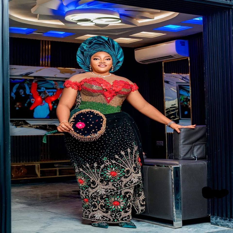 Robe de mariée nigériane en velours George avec manches longues, broderie, mélange de soie modale et de polyester pour toutes les saisons