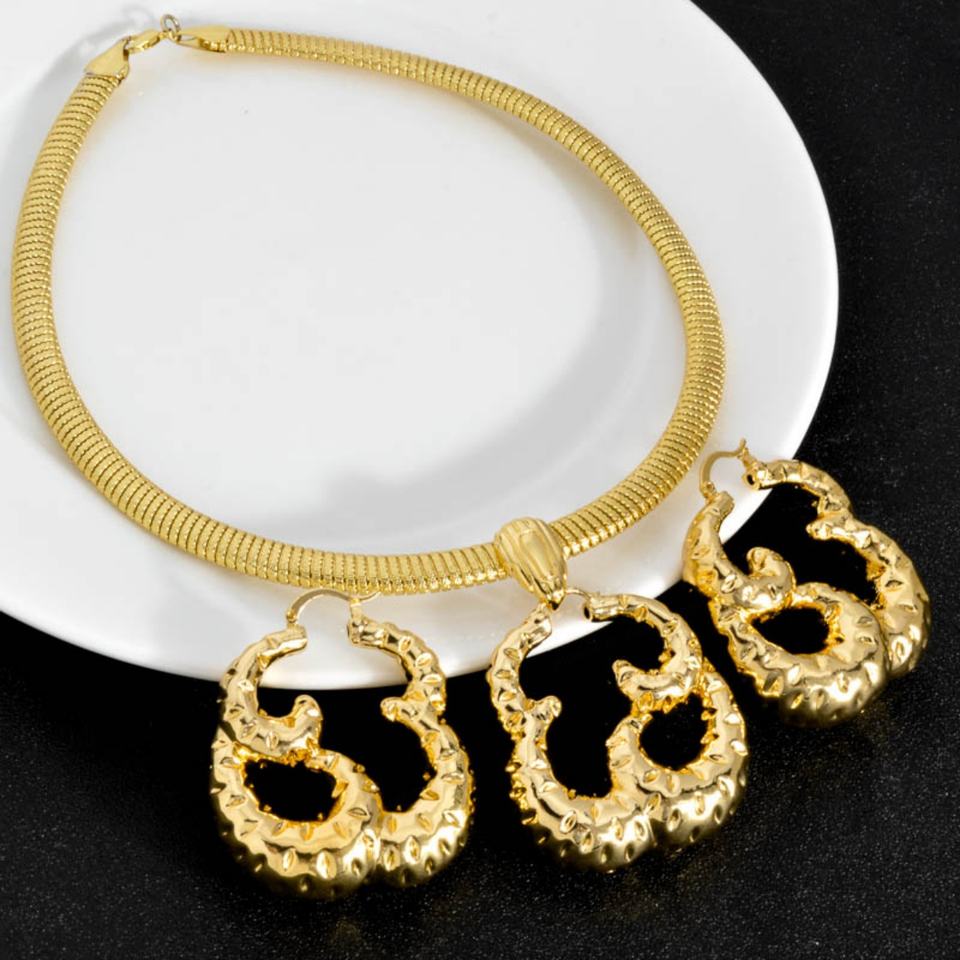 Parure de bijoux nigériane en laiton plaqué or 14 carats pour femme, idéale pour mariage, fiançailles, boucles d'oreilles, collier, cadeau, fête, anniversaire