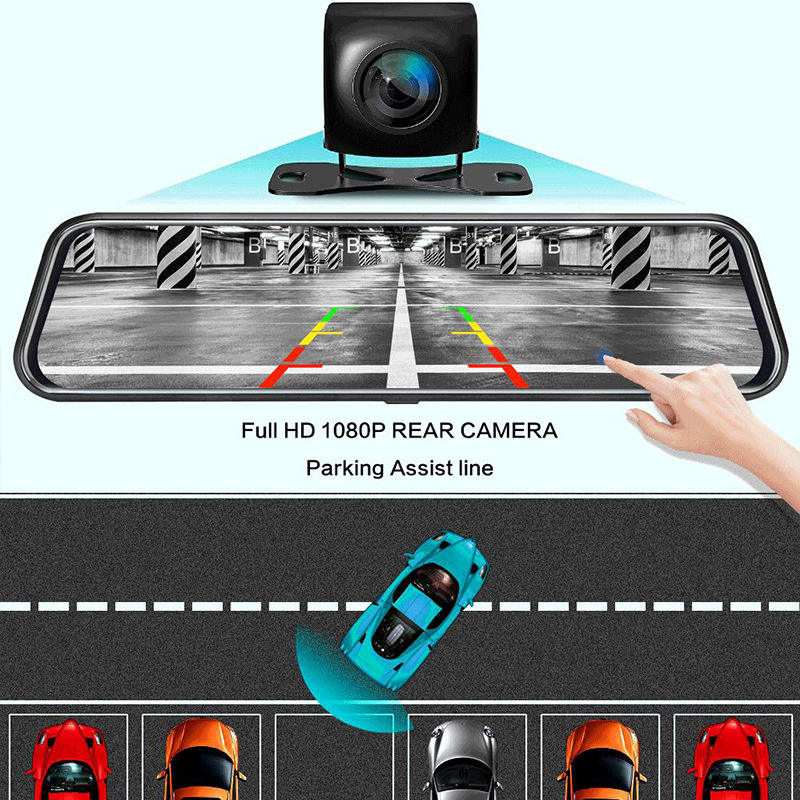 Caméra de Tableau de Bord Vision Nocturne 1080p avec Écran Tactile 10 Pouces, Grand Angle 170° et Enregistreur Double Objectif 16 Mpx pour Voiture