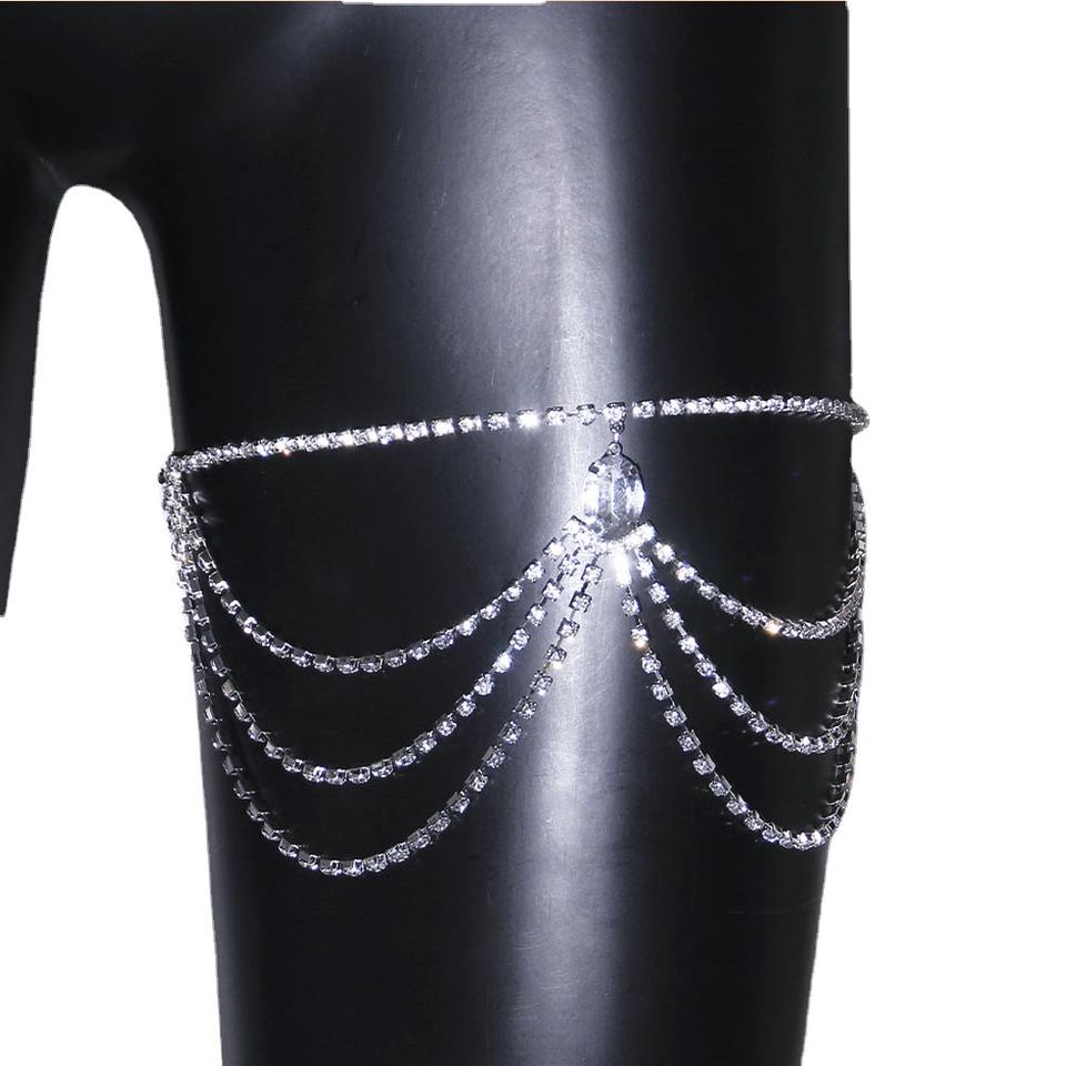 Chaîne de jambe élastique multicouche en cristal pour boîte de nuit, ceinture de cuisse en strass, bijoux de chaîne de cuisse pour femme