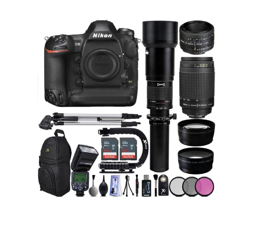 Kit Appareil Photo Reflex Numérique Nik-konn D6 Format FX 14fps 4K UHD Wi-Fi/GPS 5 Objectifs + Carte SD 128 Go 23 Pièces - Zoom Garantie 3 Ans