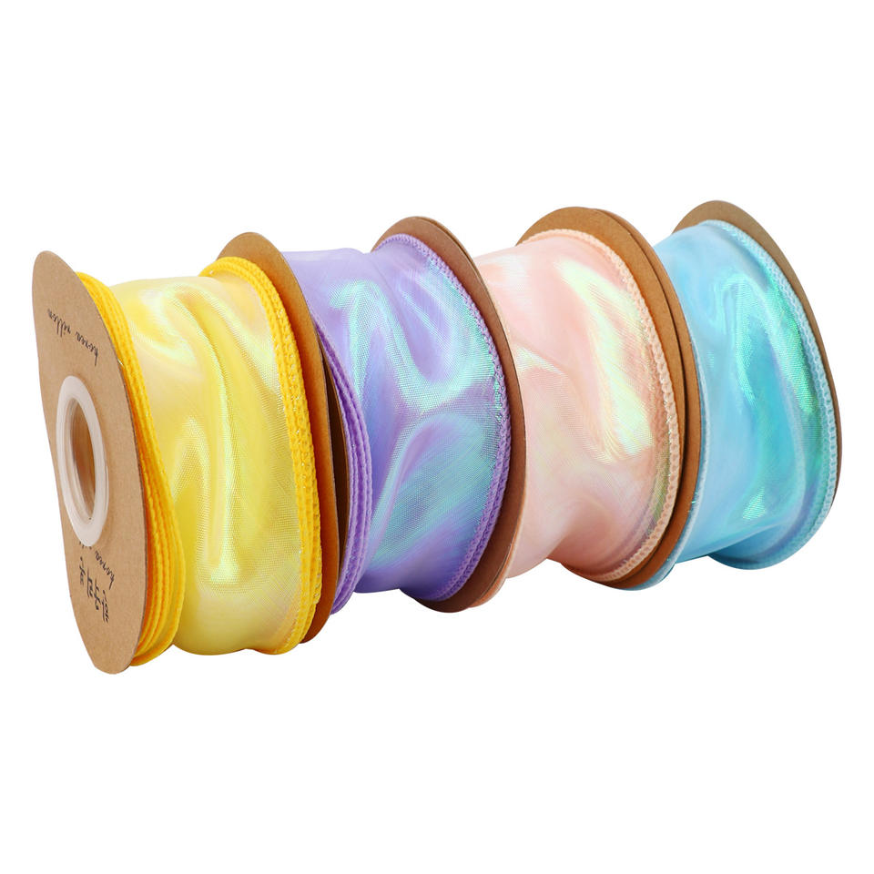 Nine-Colored Ribbon Iridescent Fishtail Yarn 6cm Aurora Overlocked Wavy Ribbon For Handmade Hair Accessory Bow DIY