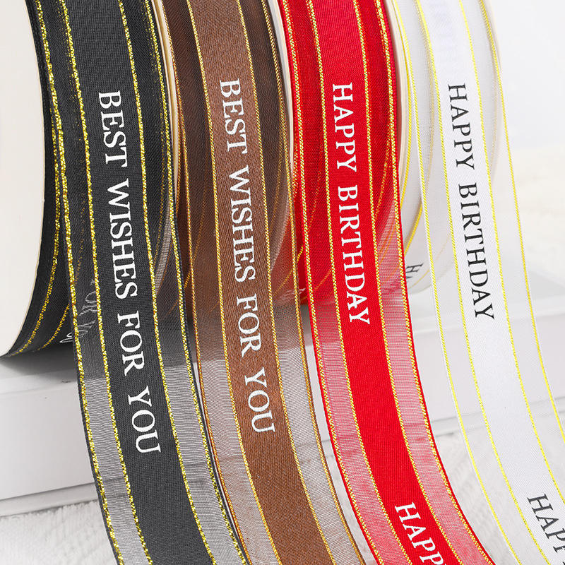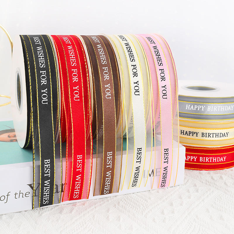 Nine-Colored Ribbon Satin-Edged Gauze Ribbon Spool Happy Birthday Printed Chiffon Birthday Decorations