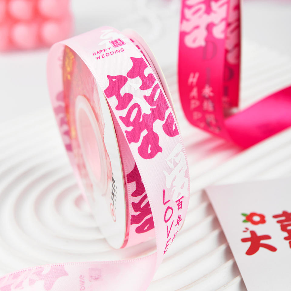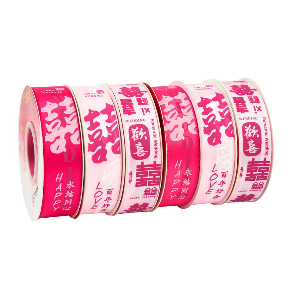 Nine-Colored Ribbon Satin Wedding Ribbon 5cm Wide Printed Double Happiness For Wedding Decoration