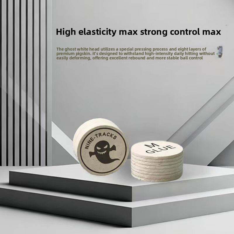 Tête de queue de billard durable multicouche Nine-track Ghost White en peau de porc 14 mm, 3 tailles disponibles (S/M/H) pour billard et snooker
