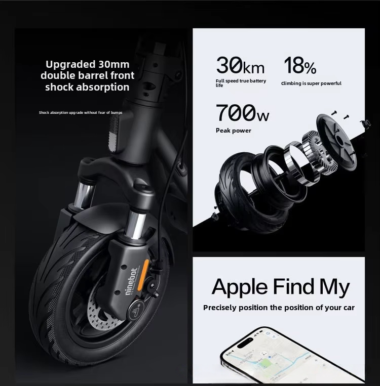 Ninebot F2 Upgrade E-Scooter Max 30 km/h Kickscooter Tout-Terrain Scooter Électrique à Deux Roues pour Adultes