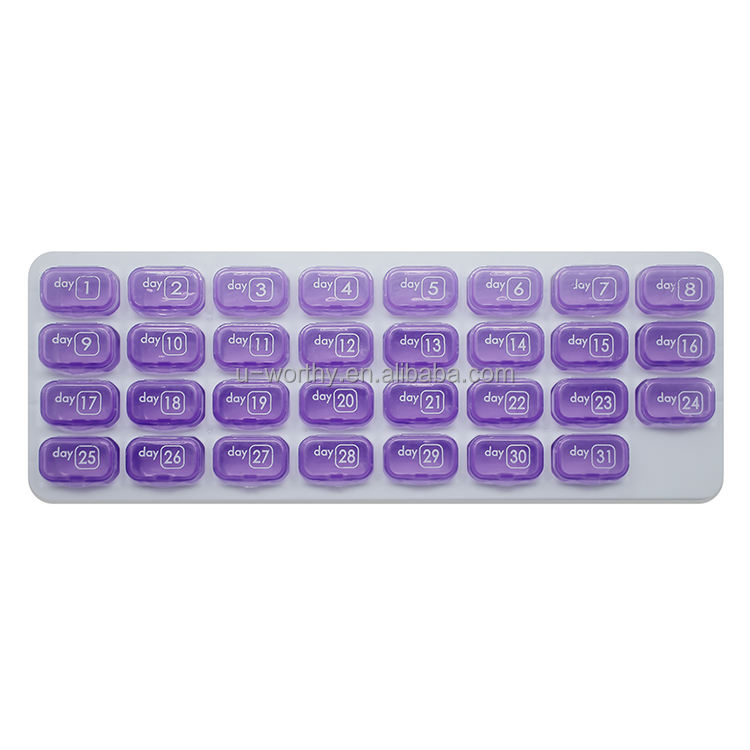 Usine de Ningbo directement couleur personnalisée PP matériel 31 jours hebdomadaire mensuel pilulier boîte