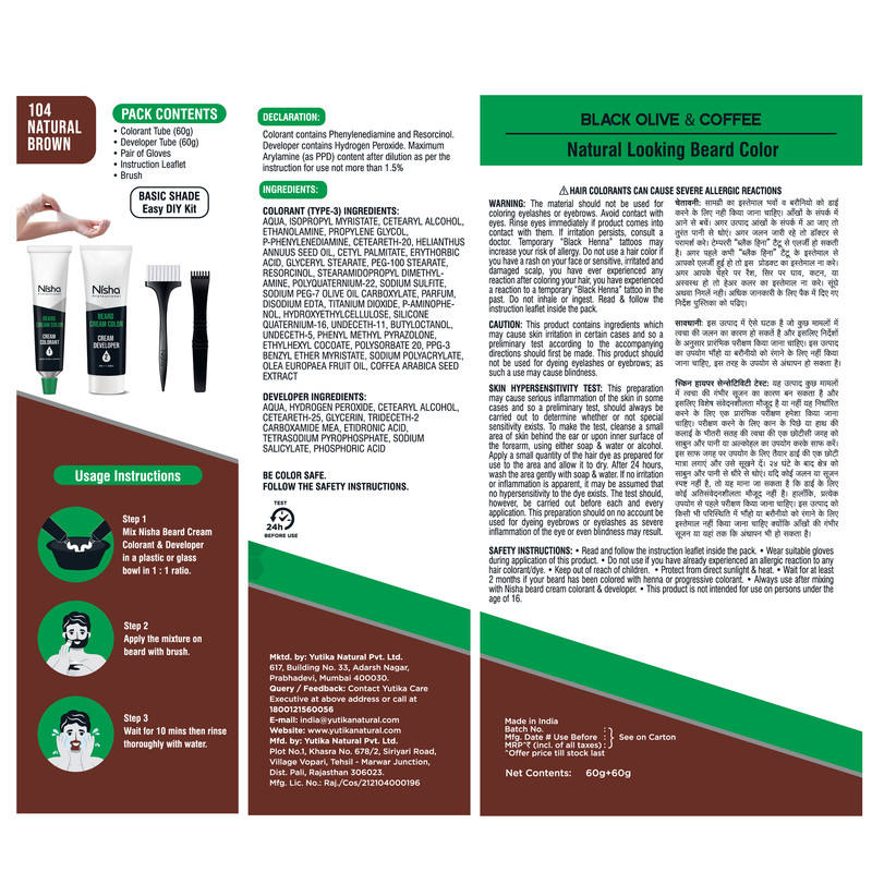 Nisha Coloration capillaire 10 minutes Longue durée sans ammoniaque et sans parabène avec une couverture grise Brun naturel sans tache