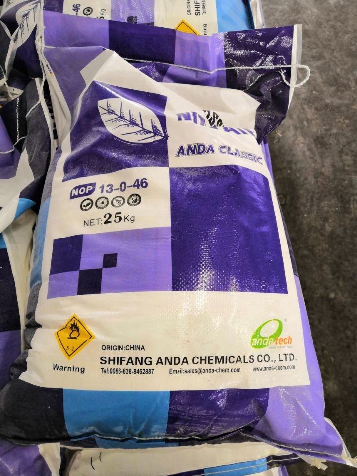 Engrais au nitrate de potassium 13.5-0-46, améliorant la qualité des fruits, engrais à haute teneur en potassium, favorise le développement de la couleur et l'augmentation du contenu en sucre pour les cultures