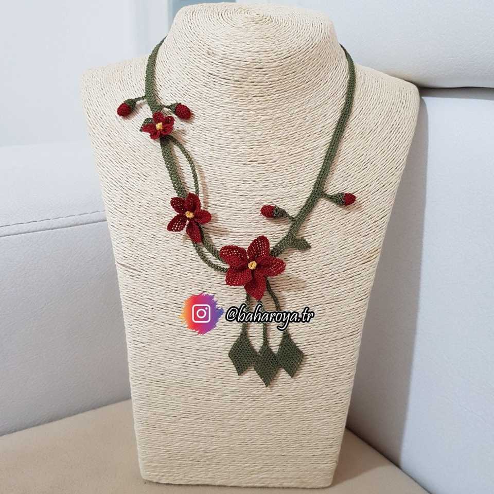 No 2 Kırmızı İğne Oyası Sarmaşık Kolye Colliers de mode