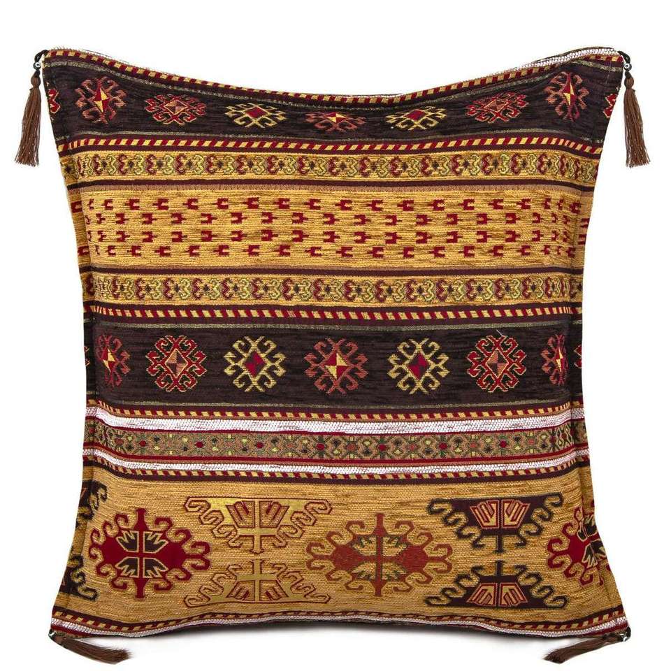 No 3 Kahverengi 45x45 cm Kilim Desenli Minder Portable Geometric Square Jute Wool Decorative Cushion for Living Sofas Christmas