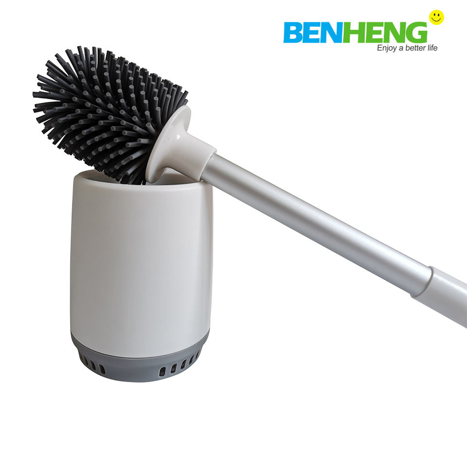 Ensemble de nettoyage de toilettes en caoutchouc, brosse de toilette en silicone à long manche sans coin mort