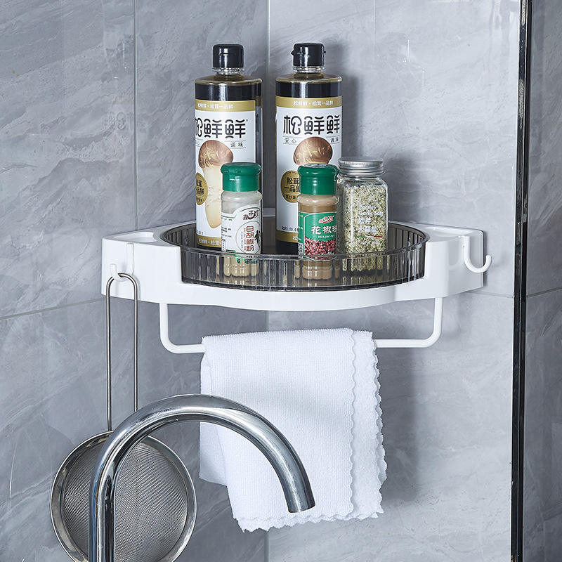 Étagère à épices rotative sans perçage, étagère de rangement d'angle pour salle de bain, organisateur mural pour cuisine et salle de bain