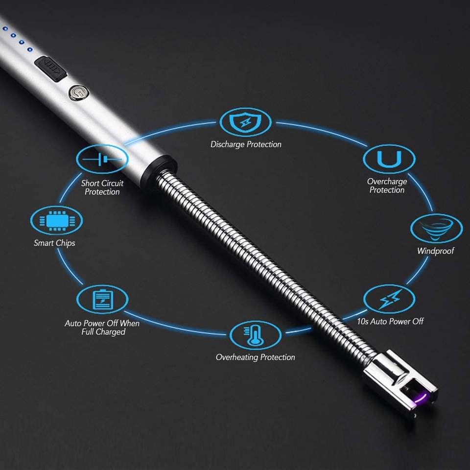 Pas de Feu Sans Flamme Usb Personnalisé Électrique Cuisine Briquet D'arc Sans Flamme 1.5-2 Heures 230*15*15mm FCC/CE/ROHS En Métal, métal 73 ± 1g