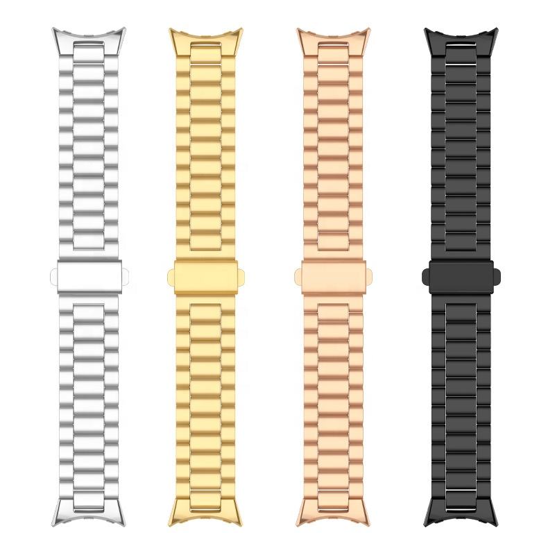 Bracelets en acier inoxydable sans interstice avec boucle à ardillon pour montre connectée Google Pixel Watch – Bracelet de remplacement