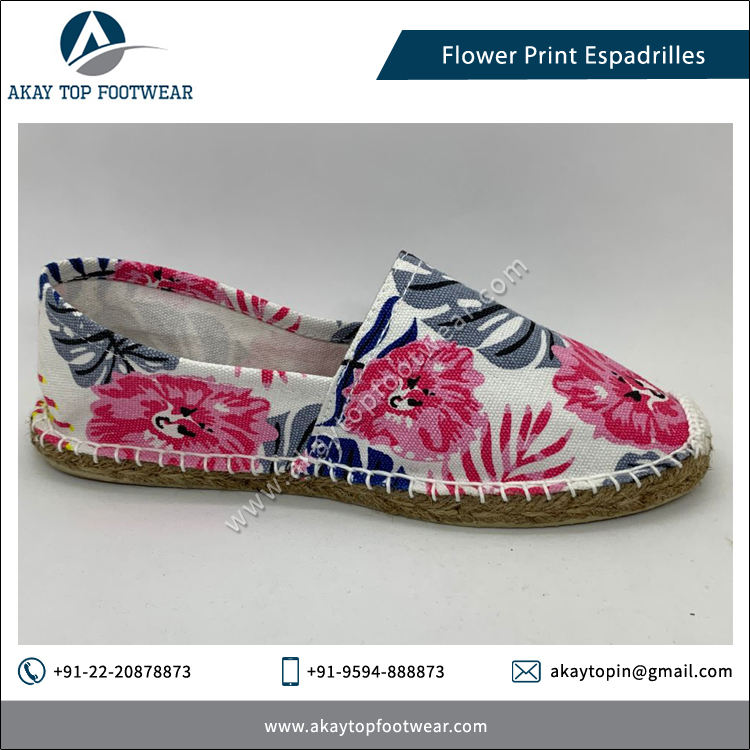 Chaussures d'espadrilles en toile plate légère avec impression d'été indien sans doublure fermeture à enfiler caractéristiques antidérapantes pour le printemps