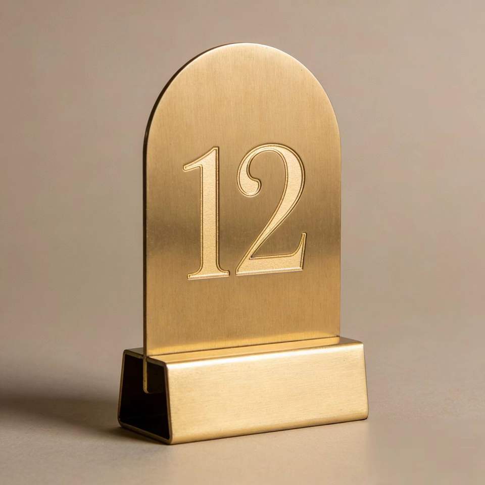Service de production sur mesure sans MOQ – Carte de numéro de table en acrylique miroir doré pour mariage, banquet, hôtel, bar, restaurant, réunion d'affaires