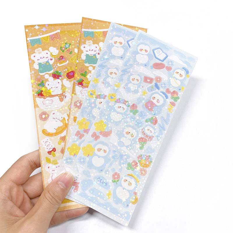 Feuille d'autocollants pailletés à effet arc-en-ciel, impression personnalisée, autocollants adhésifs imperméables découpés à la forme, autocollants décoratifs pailletés, sans MOQ