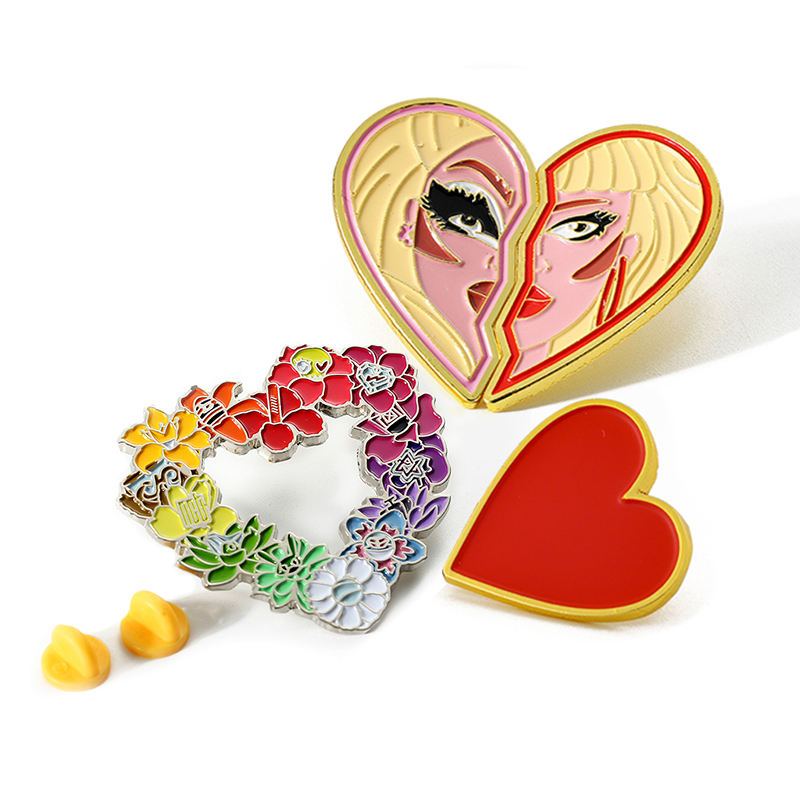 Pas de minimum d'épingles en métal personnalisées concevez vos propres épingles en émail doux 2d 3D belle fleur en forme de coeur or argent épinglette badges