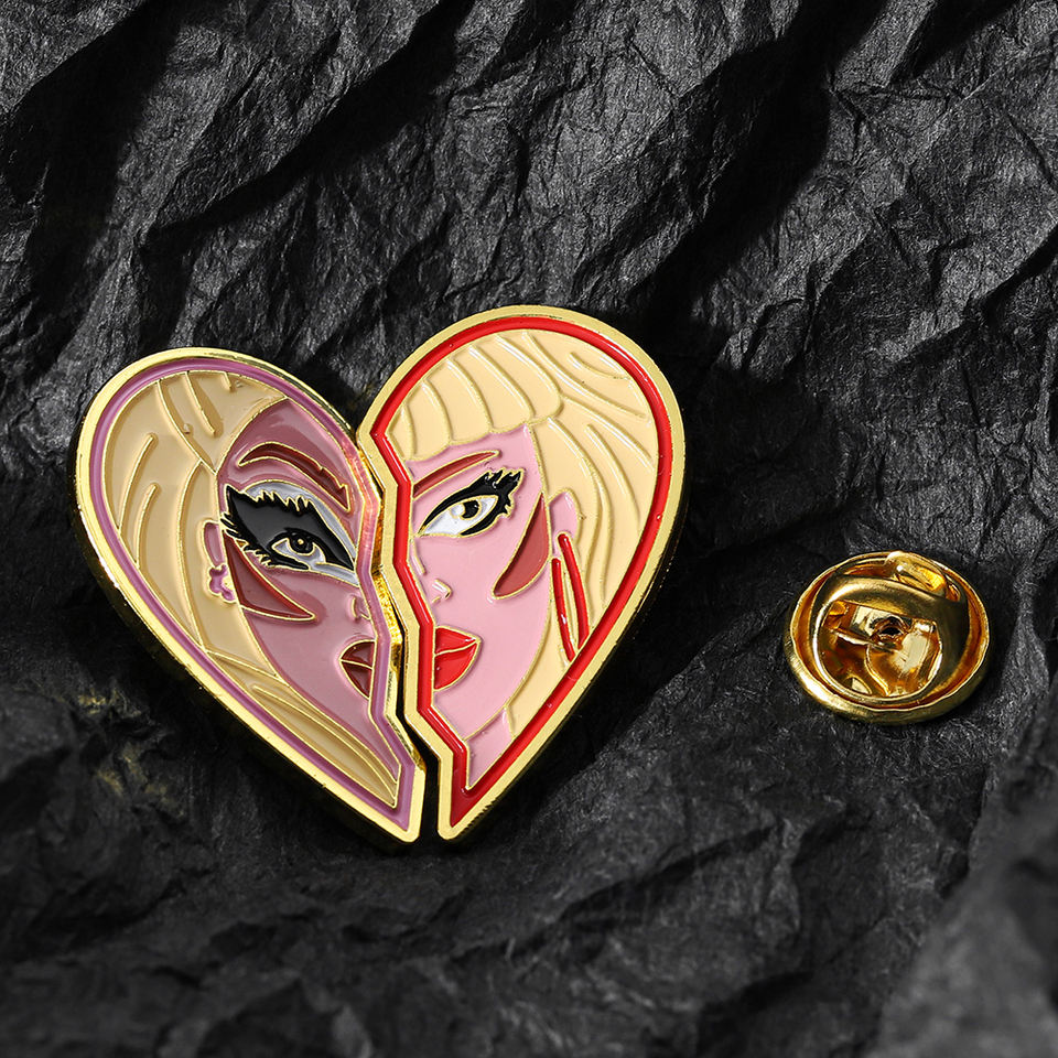 Beautiful Flower Heart Shape Gold Silver Lapel Pin Badges
