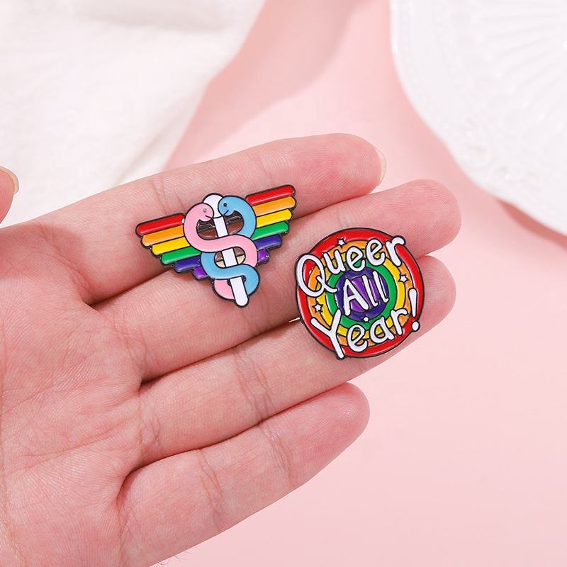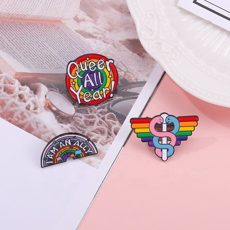 Pas de minimum personnalisé arc-en-ciel épingles insigne en gros coloré lettre LGBT lesbienne Gay doux émail broche LOGO personnalisé fierté épinglettes