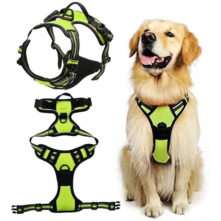 Harnais anti-traction pour chien, réfléchissant, réglable, respirant, gilet sportif pour animaux de compagnie, robuste, pour l'entraînement des grands chiens, noir, vert fluo