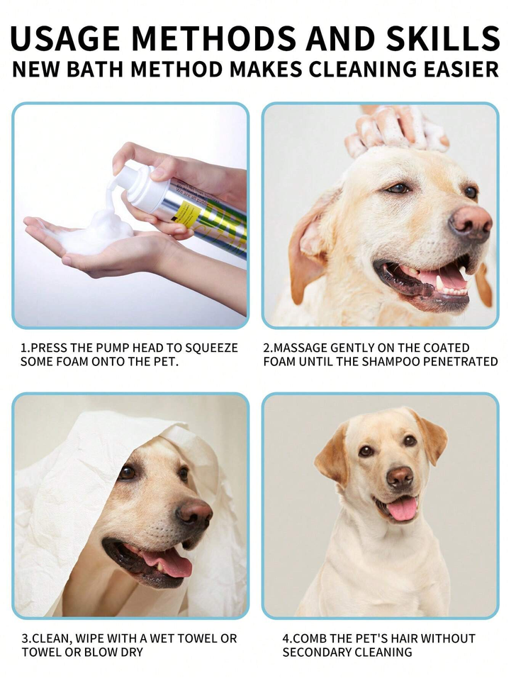 Shampooing Sec Nettoyant en Profondeur Sans Rinçage 200ml Personnalisé Hydratant Anti-Démangeaisons Désodorisant pour Animaux de Compagnie
