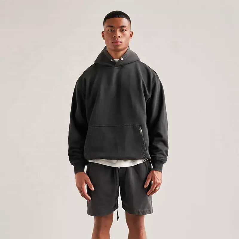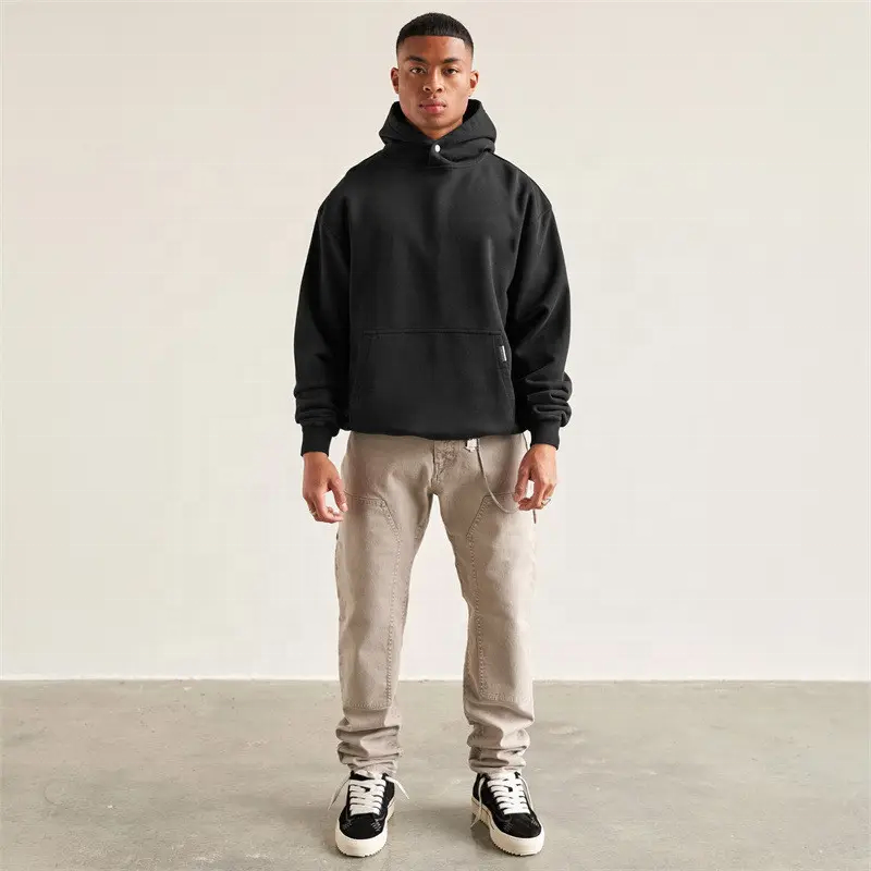 Sweat à capuche oversize sans cordon avec poche, poids lourd 400 g/m², 100 % molleton français, épaules tombantes, coupe ample pour homme