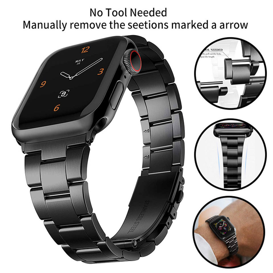 No Tool Needed Stainless Steel Strap Bracelet Adjustable Band for Apple Watch 8 7 49mm IWatch Serie SE 41/45mm 44/40mm Watchband
