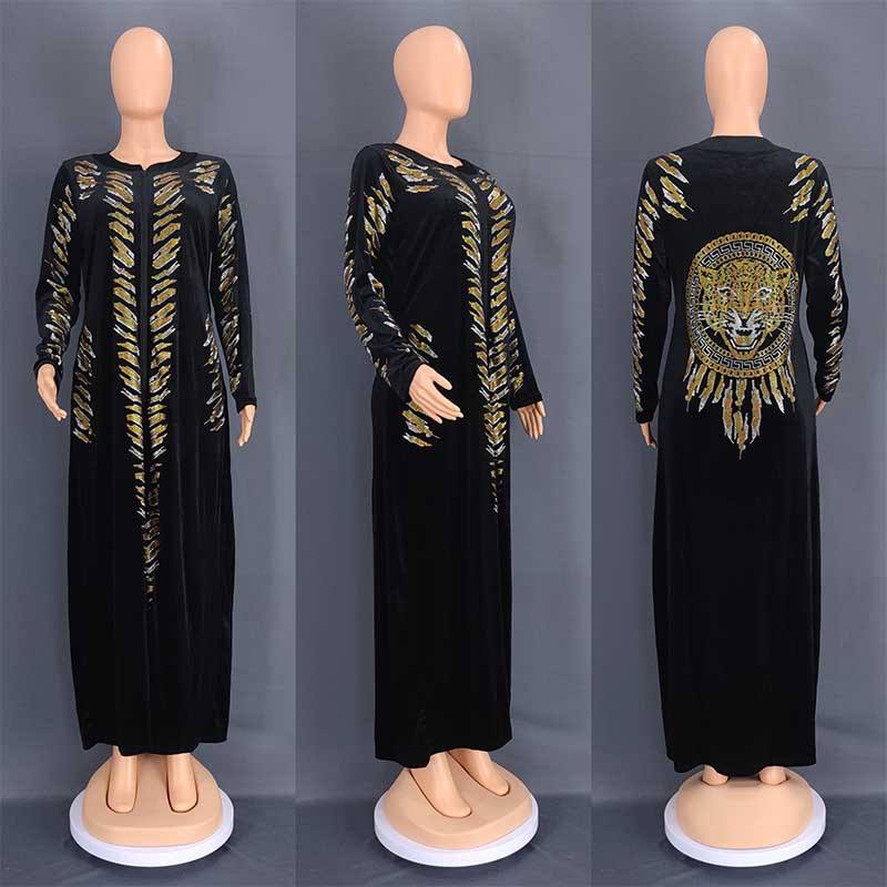 Noblesse Velours Strass De Haute Qualité Robe Ethnique Mince Paon Élégance Robe À Paillettes