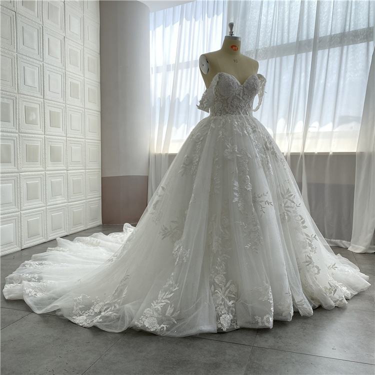 Noble mariée hors épaule cathédrale robe de mariée de l'église