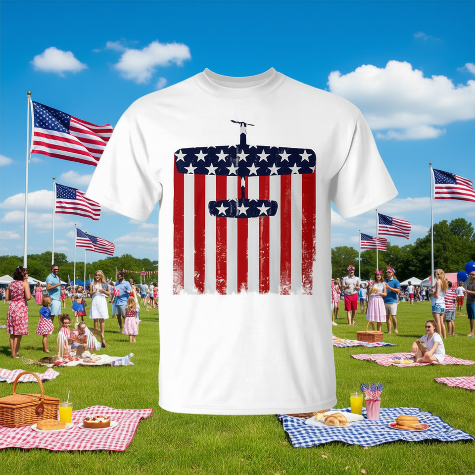 T-shirt promotionnel Nobler Control Line avec drapeau américain du 4 juillet pour avion télécommandé