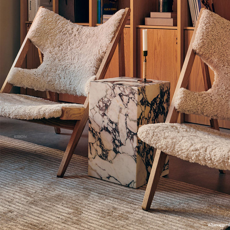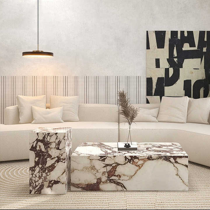 Table basse en marbre Calacatta Violet de luxe à base basse, forme rectangulaire moderne nordique, décoration de salon