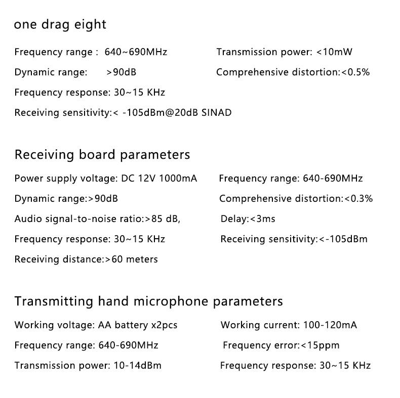 Réduction de bruit sans fil 2,4g 8 canaux Traitement numérique UHF Égaliseur de son avec microphones à condensateur USB Transmission 100m