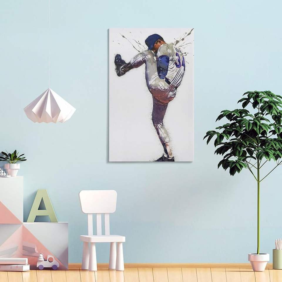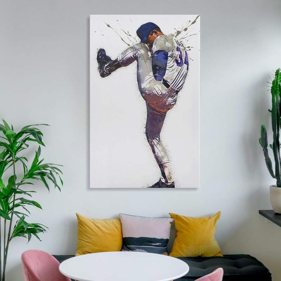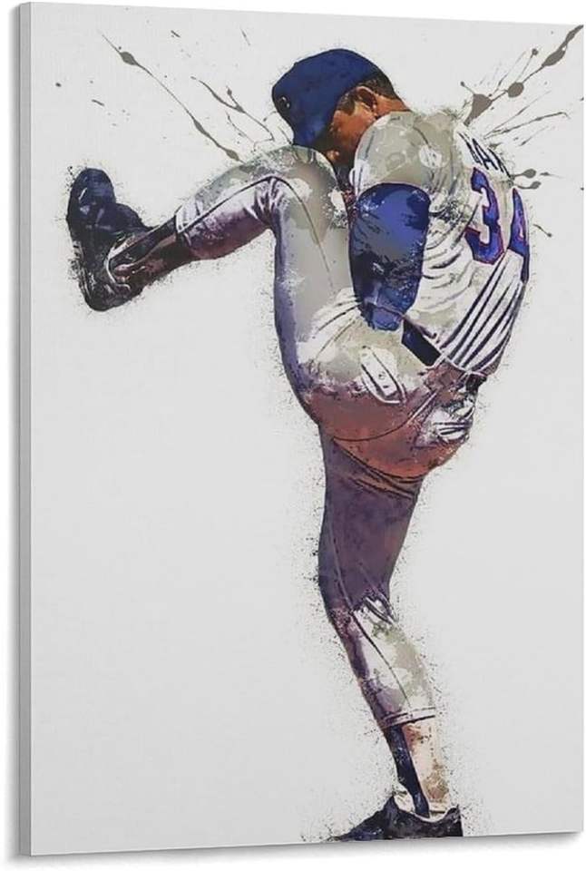 Nolan Ryan Baseball Legend Canvas Wall Art Print Famous Athlete Sports Portrait for Home Decor Fans Gift