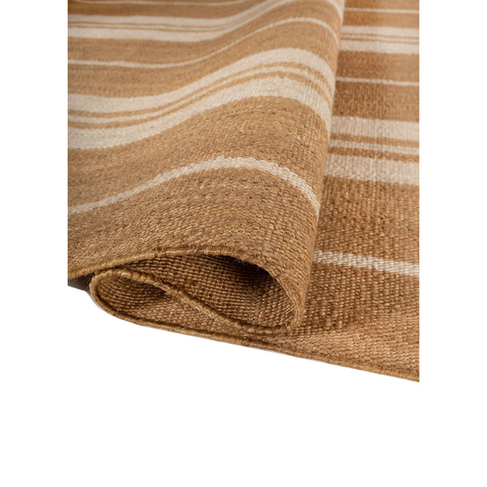 Tapis en jute et chanvre tissé plat Nomadic Threads PDJT-809 beige et marron, rayé, rectangulaire, pour la maison, la chambre, le salon, le couloir