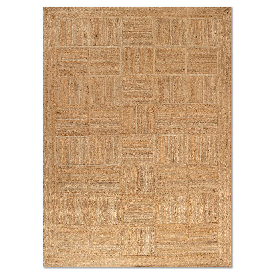 Tapis en jute et chanvre tissés à plat, patchwork beige et marron, Nomadic Threads, pour usage domestique - PDJT-115