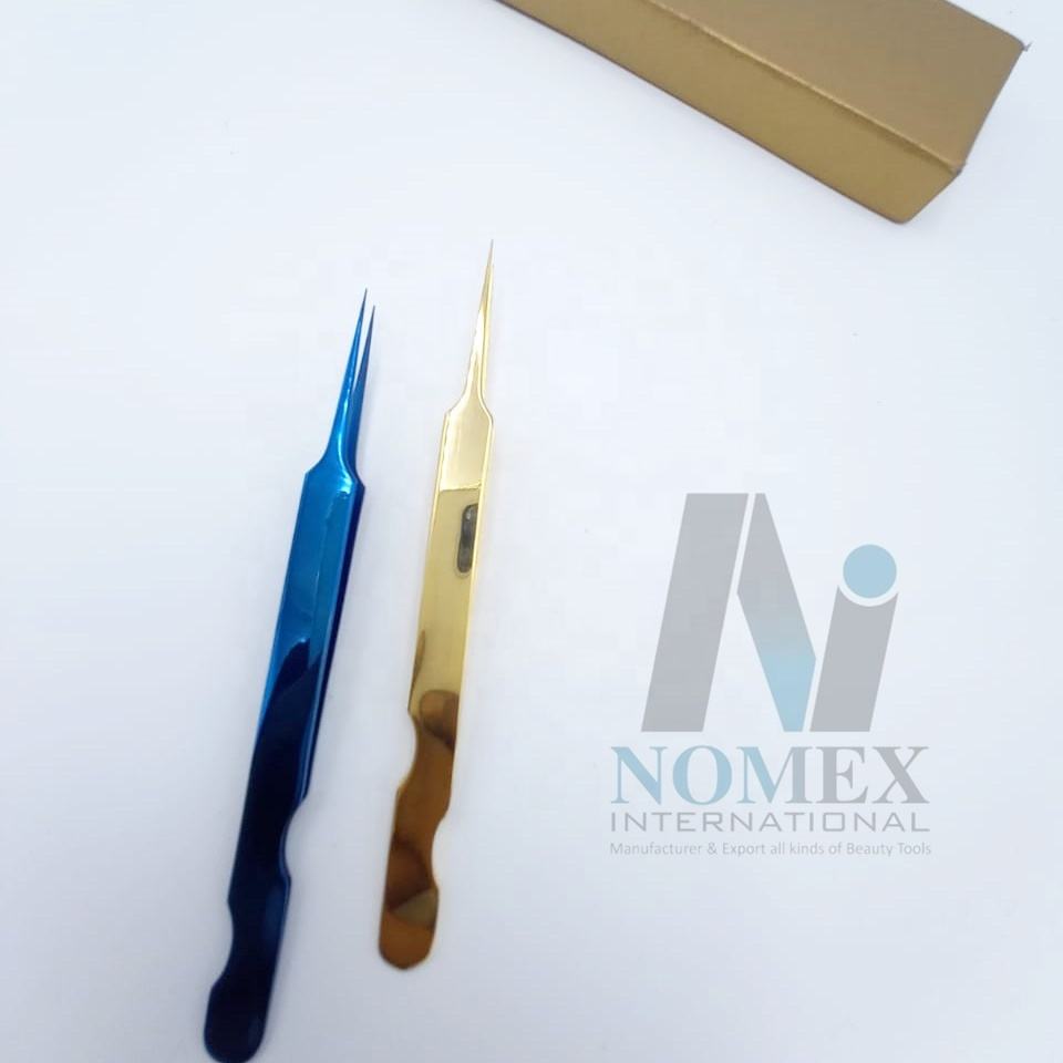 Pince à épiler enduite de couleur plasma pour extension de cils Pince à cils pointue droite de la meilleure qualité avec nom de marque personnalisé