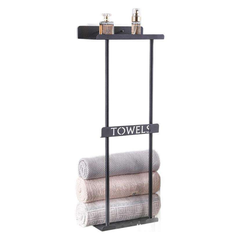 Étagère de rangement murale non perforée et porte-serviettes pour salle de bain