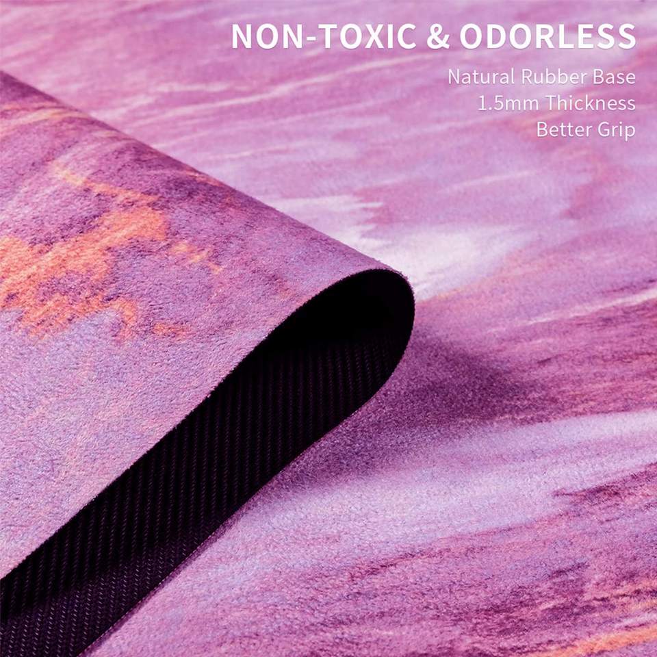 Tapis de yoga et de Pilates en daim antidérapant 1,5 mm, haute densité, surface anti-déchirure, lavable en machine, tapis d'exercice polyvalent pour le voyage, avec sac de transport