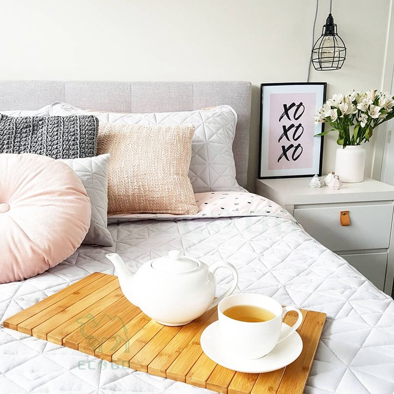 Plateau de canapé rectangulaire en bambou laqué antidérapant, style campagnard, à un seul niveau, épaisseur 2 cm, pliable pour la vaisselle dans le salon