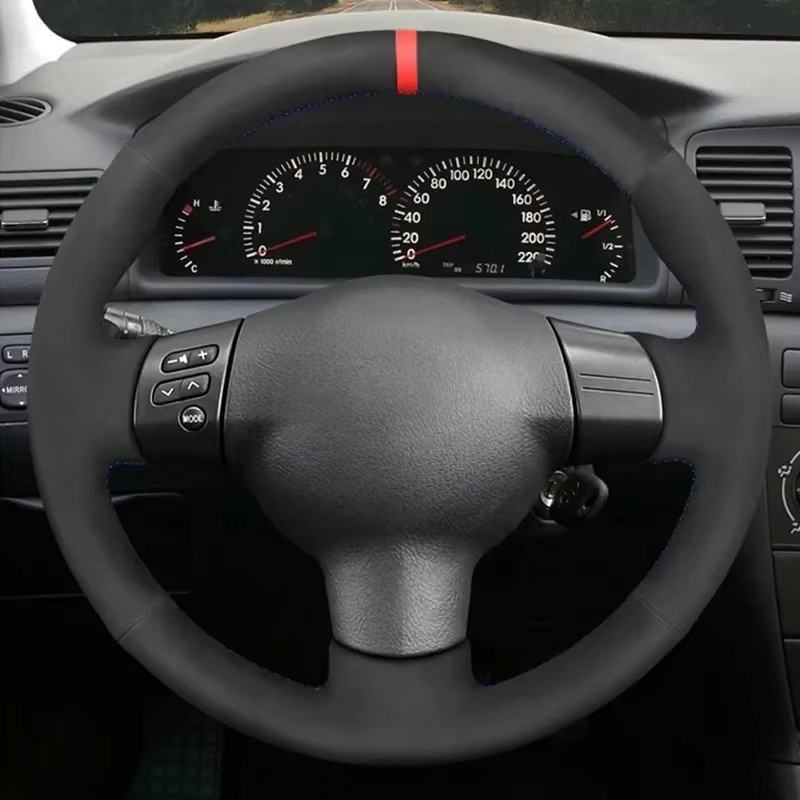 Housse de volant de voiture en cuir suédé noir antidérapant pour Toyota Corolla RAV4 Caldina Wish Scion TC XA XB 2003-2009