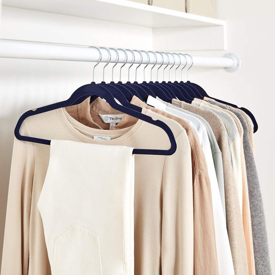 Cintres en tissu velours fin antidérapants bleu marine/argent, lot de 50 pour costumes et vêtements