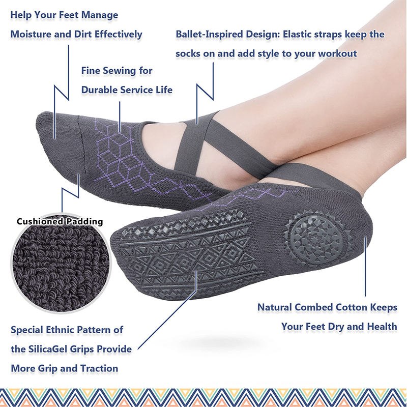 Pilates Avec Poignées Pour Femmes 4 Pack Logo Personnalisé Barre Chaussettes De Yoga