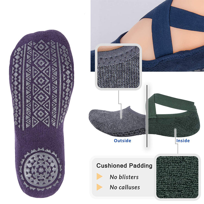 Nom du produit:Pilates Avec Poignées Pour Femmes 4 Pack Logo Personnalisé Barre Chaussettes De Yoga
