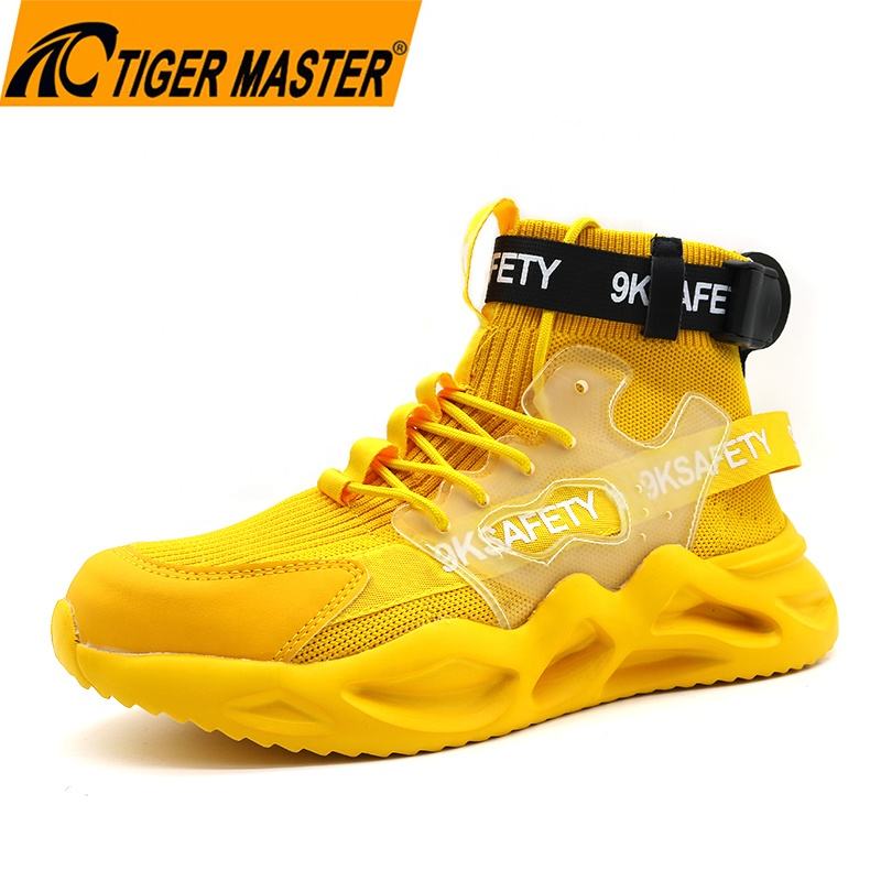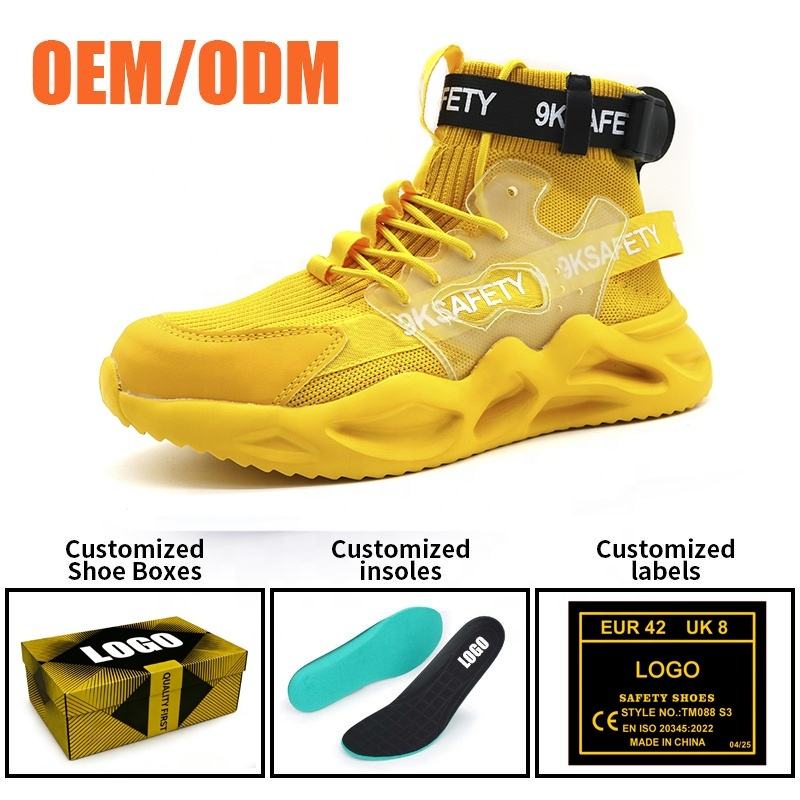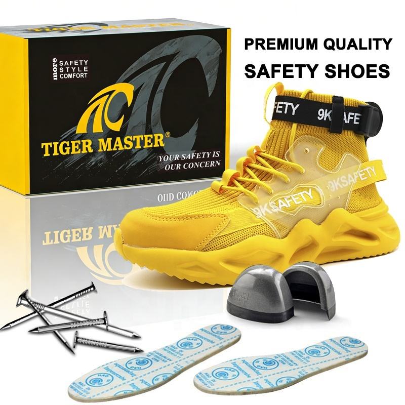 Chaussures de sécurité pour hommes, antidérapantes, semelle EVA souple, tissu extensible respirant, légères, anti-perforation, embout en acier EU, couleur jaune