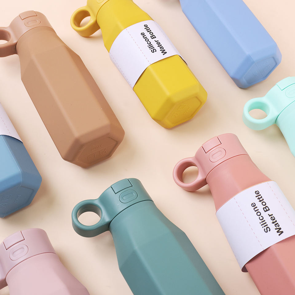 Bouteille d'eau pour bébé en silicone platine incassable, portable, couleur unie, étanche, avec logo personnalisé pour le sport et les voyages