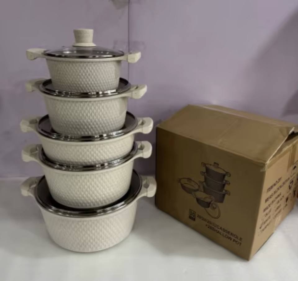 Ensemble de cuisine en aluminium antiadhésif 10 pièces 20-32 cm, marmite avec casserole peu profonde, revêtement en granit durable pour cuisinière à gaz