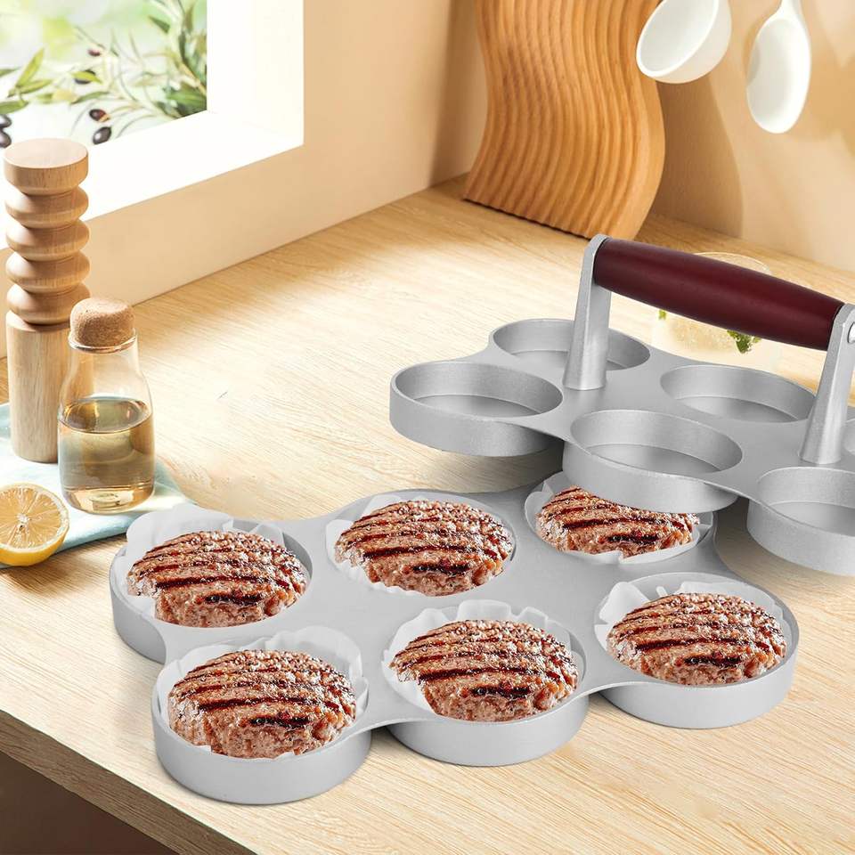 Outils de cuisine antiadhésifs, barbecue, pique-nique, grille à double trou, mini presse à hamburgers manuelle, moule à hamburgers, presse à galettes