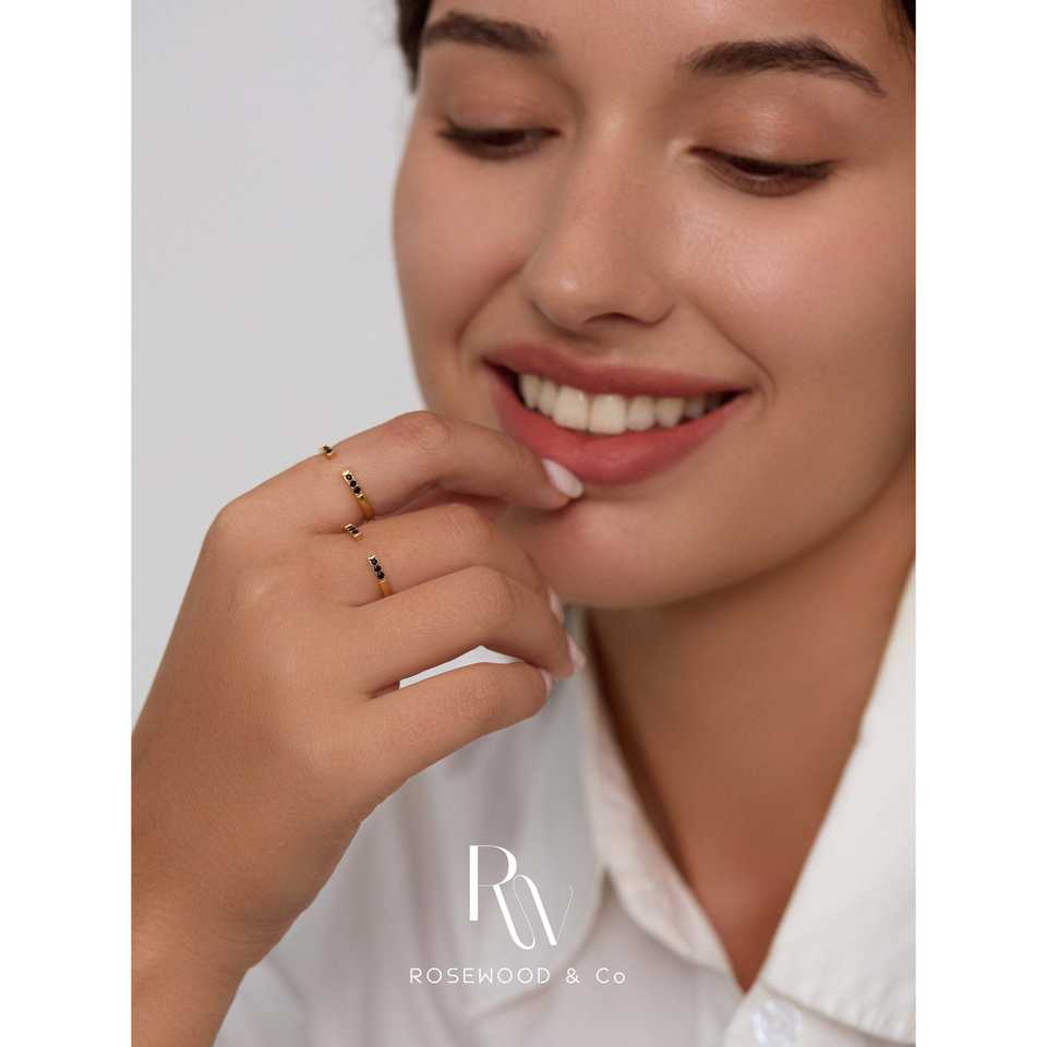 Bague signet noire pavée anti-ternissement, étanche, à bande ouverte, empilable, simple, cadeau pour elle